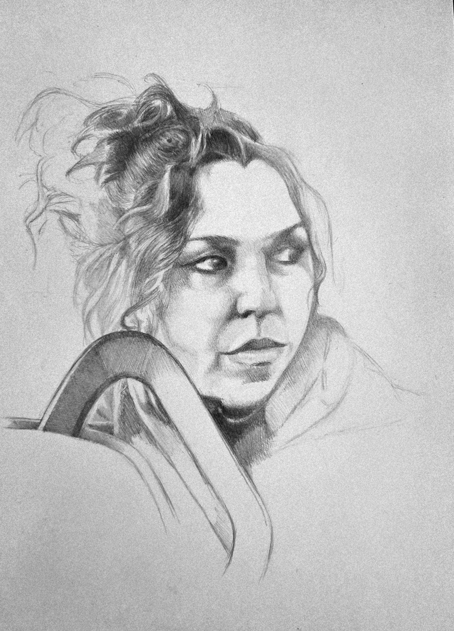 7 maart 2026De mysterieuze dame uit de bus vordert langzaam… maar gestaag. Het is toch wel het meest bijzondere portret in mijn artistieke bestaan waar ik nu aan werk. Niet in de laatste plaats omdat ik haar stiekem fotografeerde en eigenlijk nog steeds niet weet wat me bezielde om me daartoe te bewegen. Het was een impuls die ik nog niet eerder heb gehad. Niet vanuit huidhonger, iets wat ik wel degelijk voel sinds mijn scheiding (nu bijna twee jaar geleden), maar vanuit zuivere ooghonger.