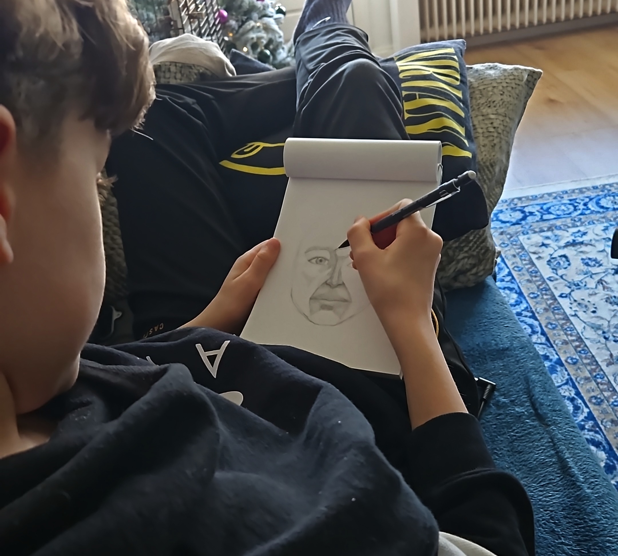 En eh… ik mag mijn talent nu op mijn werk gaan inzetten. In de vorm van het geven van een workshop portretteren. Hoe leuk is dat?! Gelukkig heb ik daar ervaring mee en daar ooit zelf lesmateriaal voor gemaakt om les te geven op een Volksuniversiteit. Daarom bedacht ik dat het leuk zou zijn om mijn zoon in te zetten, om mijn stappenplan in het opzetten van een basis-portret, te testen. Met de simpele, achterliggende gedachte: Als hij het kan… dan kunnen mijn moedige, volwassen collega’s het ook! Wederom: we gaan het zien!
